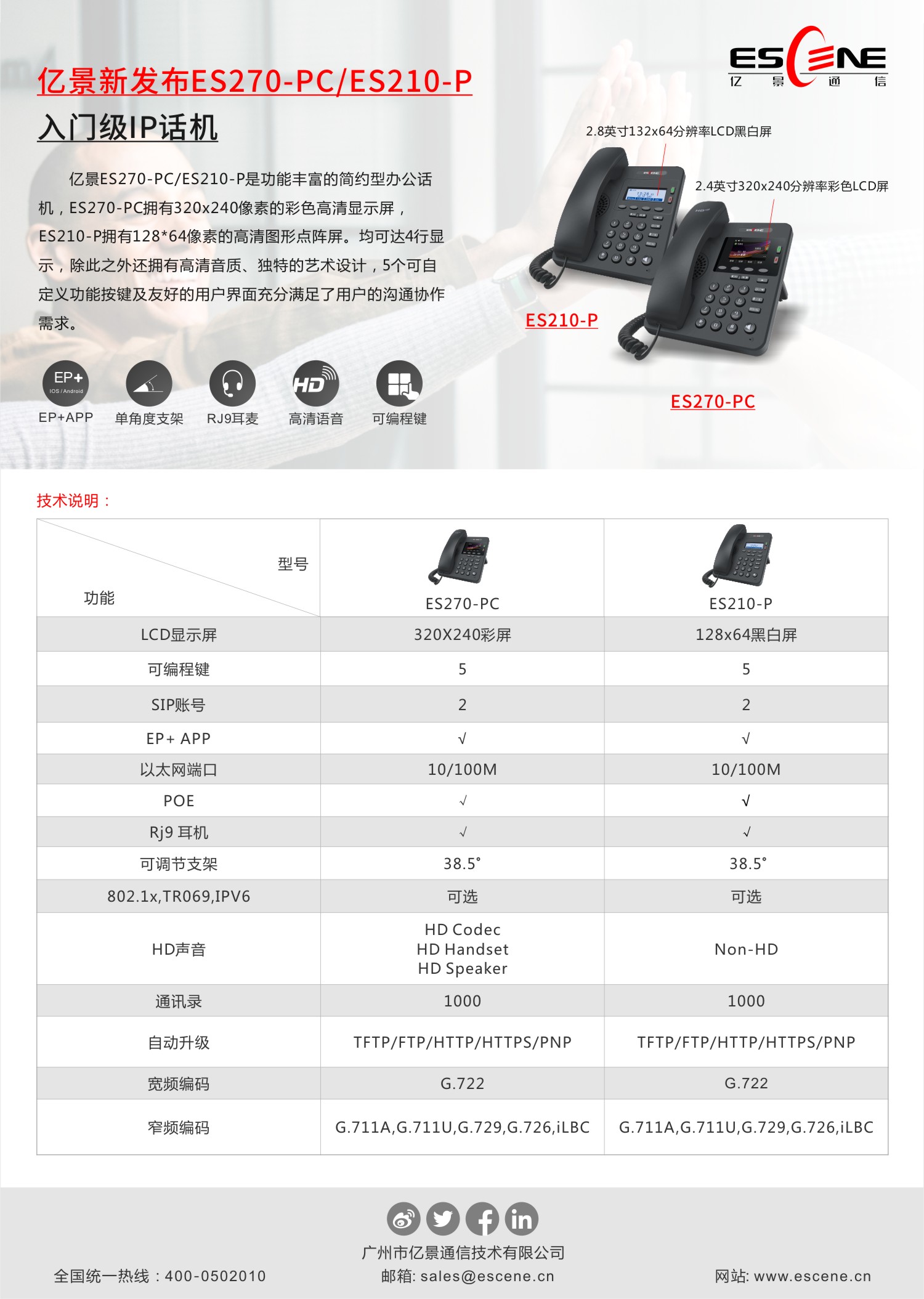億景新發布ES270-PC/ES210-P入門級IP話機